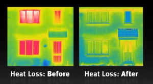 For example, Forbes recently labeled America as, “The Worldwide Leader in Wasting Energy”.[1] They claim that the United States wastes more energy than it uses because 57% of energy flow is lost through heat and leaks.  This is a perfect example of past mistakes that need to be corrected.  Figure 2 provides another example from a real-life case-study of a home in Britain.[2] The thermal imaging results show the heat loss problems that occur as a result of poor quality windows and doors (indicated by red or pink shades). The second image shows the positive change that occurred when the inefficiency was addressed by replacing the windows and doors. Therefore, as we discuss energy issues we must