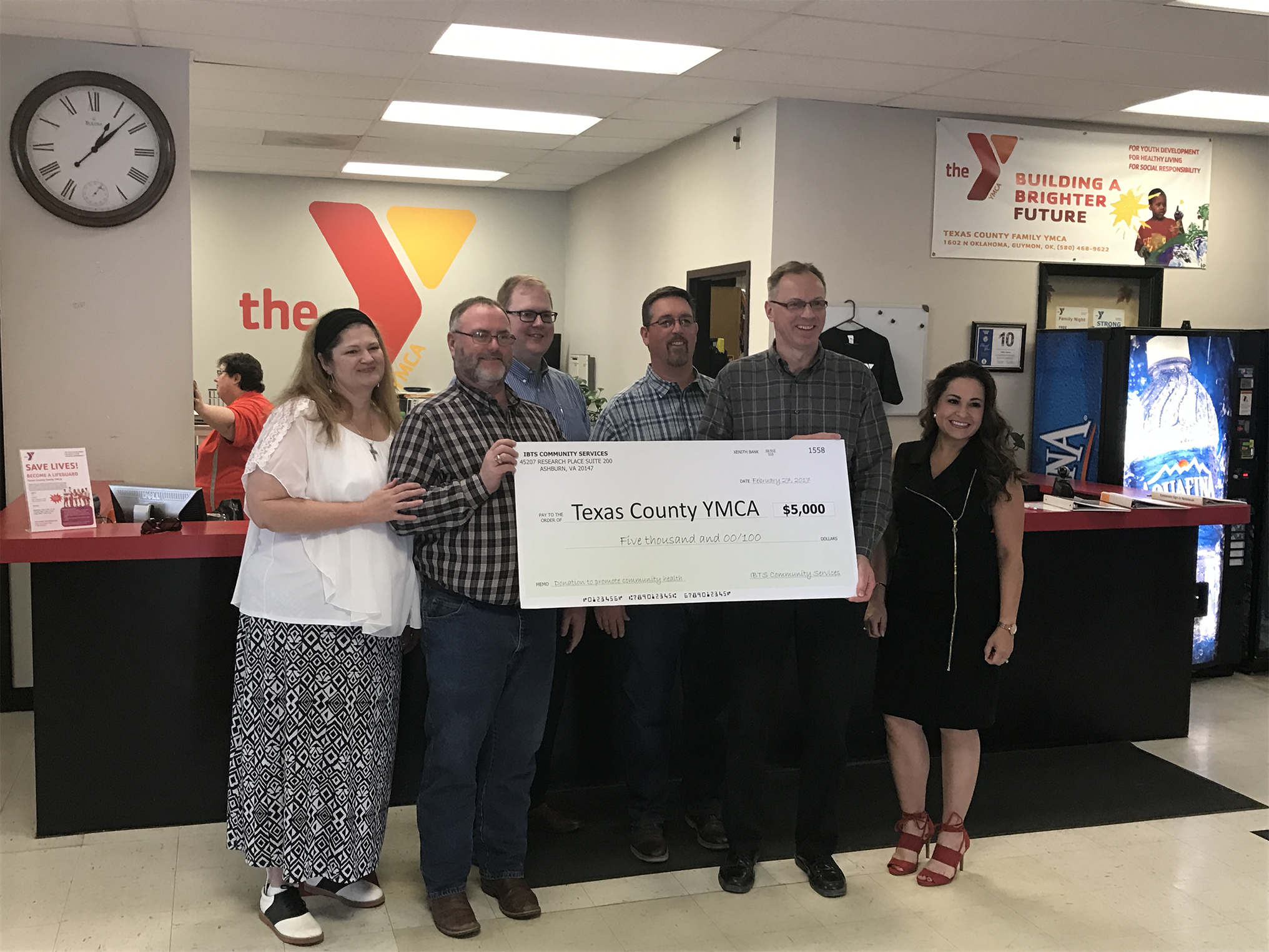 IBTS Community Services, LLC (IBTS-CS), a wholly owned subsidiary of the Institute for Building Technology and Safety (IBTS), last week presented the Texas County Family YMCA with a donation check for $5,000.